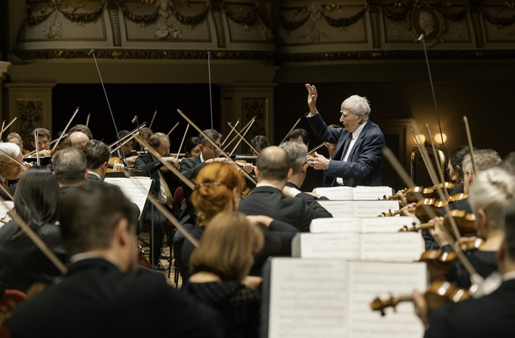 W latach 1975–1985 funkcję szefa zespołu pełnił znakomity kapelmistrz Herbert Blomstedt, który swój pierwszy koncert z tą orkiestrą poprowadził już w kwietniu 1969 roku. Pięćdziesiąt siedem lat później sędziwy artysta (przypomnę – rocznik 1927!) pozostaje nadal aktywny zawodowo. Szczególnie chętnie sięga po symfonie Antona Brucknera. Miałem już szczęście słyszeć w jego wykonaniu Siódmą, Ósmą i Dziewiątą – wszystkie z lipską Gewandhausorchester. Tym razem wybór padł na pogodną V Symfonię B-dur, określaną czasem mianem „Symfonii pizzicato”, gdyż od dźwięków wykonywanych w tej artykulacji rozpoczynają się trzy z czterech jej ogniw.